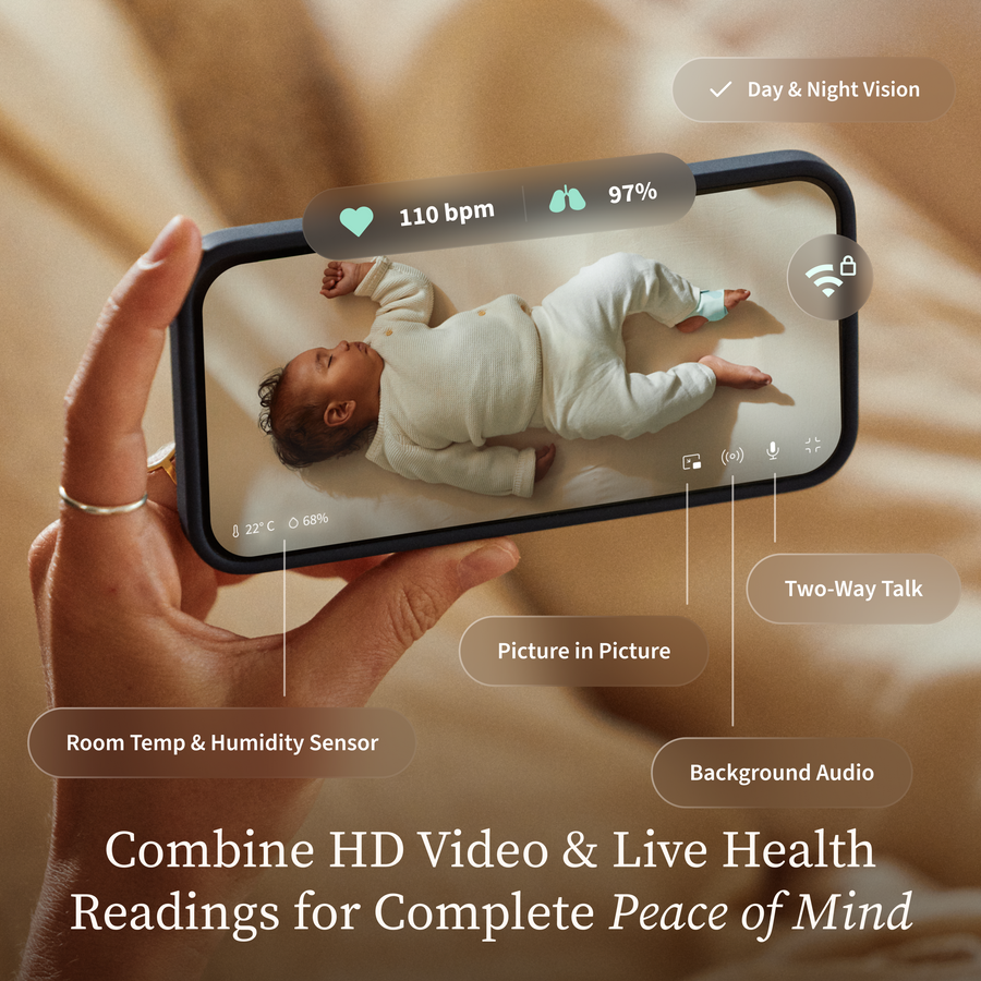 Dream Duo is the only baby monitor that combines FDA-cleared, medical-grade health tracking with crystal-clear 2K HD video—giving you a more complete picture of your baby’s well-being. While traditional monitors show you how your baby looks, Dream Duo helps you understand how they’re really doing, with live pulse rate, oxygen, and sleep patterns, all in one convenient app. You’ll receive real-time notifications when Baby may need you, plus helpful tools like Predictive Sleep Technology to support healthy sleep routines.