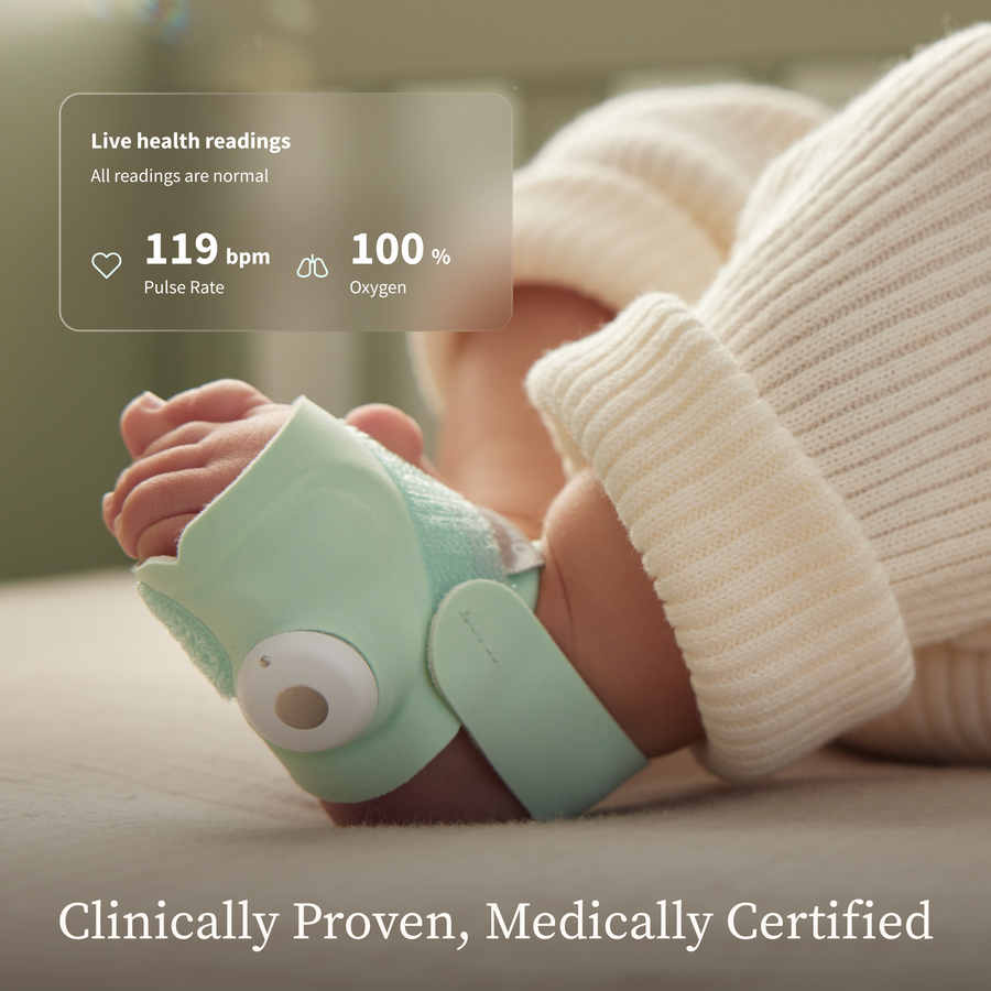 - Smart Alerts: Pulse rate & oxygen + cry, sound, motion