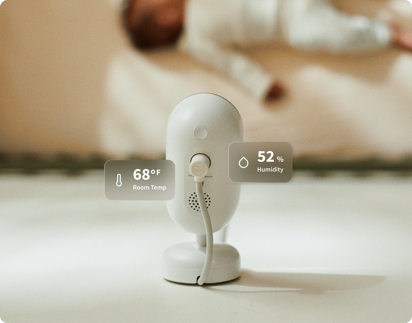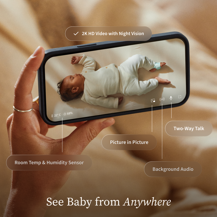 Get real-time notifications for crying, motion, and sound, plus room temperature and humidity, so you’re always informed, supported, and never left guessing.