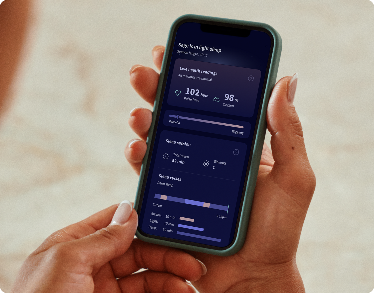 • Real-Time Health Insights You’ll receive live pulse rate and oxygen readings, as well as wakings and sleep trends, all with accuracy you can trust.