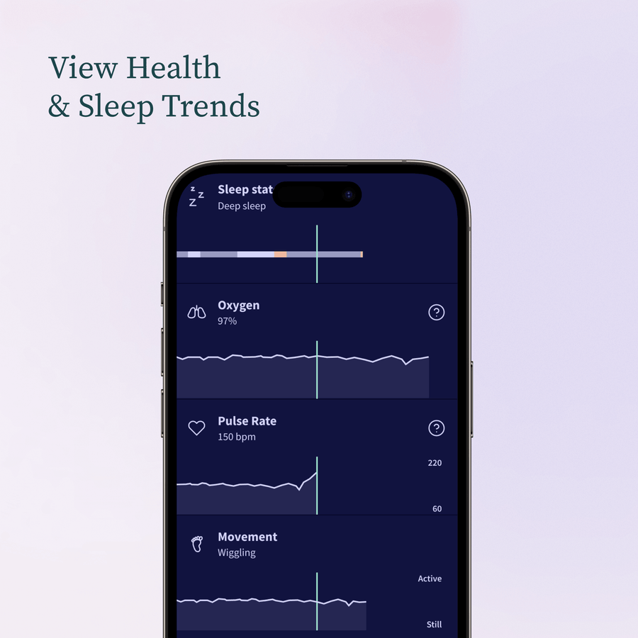 • Nightly History & Trends Dive deeper into your baby’s sleep and health patterns with detailed charts from overnight or past nights. Spot trends, adjust routines, or share valuable data with your pediatrician.