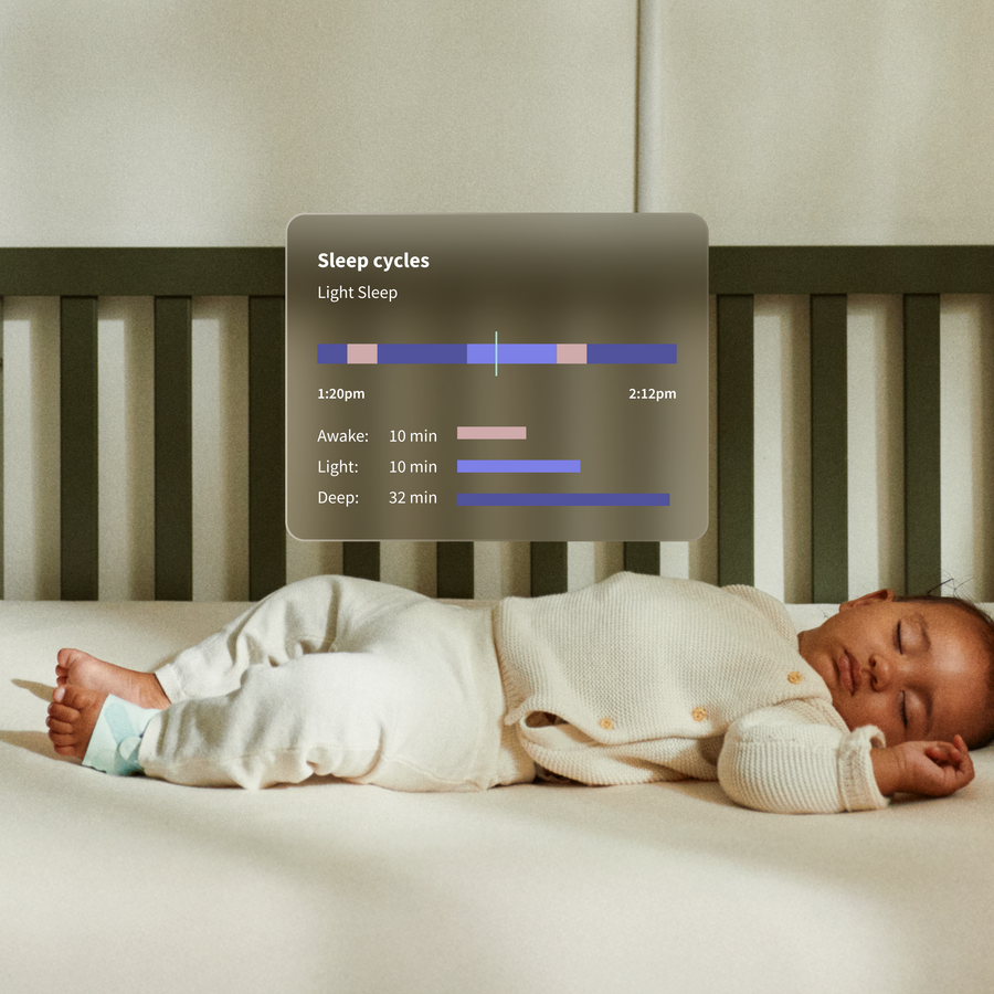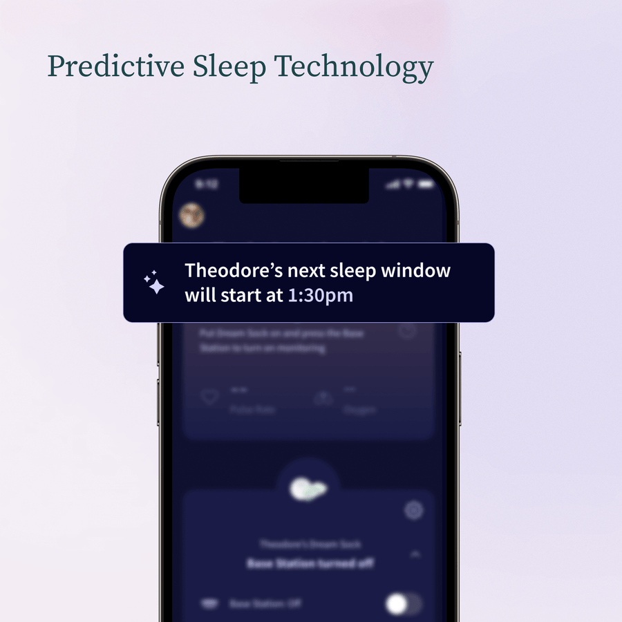 • Dream Sock doesn't just track health—it learns your baby's unique sleep patterns through predictive sleep technology. You'll receive personalized insights that help you understand when your baby needs rest, creating better sleep habits for the whole family.