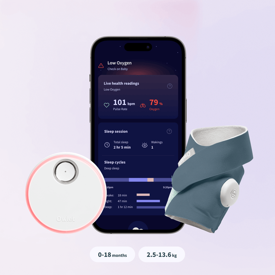 Dream Sock® goes beyond traditional monitors that only pick up sound or movement. As the only FDA-cleared smart baby monitor of its kind, it uses the same pulse oximetry technology trusted by hospitals to track your baby’s pulse rate and oxygen level in real time. You’ll receive real-time notifications if readings fall outside safe zones, so instead of worrying, you can rest assured you’ll be alerted when it truly matters. Plus, the Owlet Dream App provides personalized sleep insights to help your little one sleep soundly, and give you the peace of mind (and rest) you deserve.