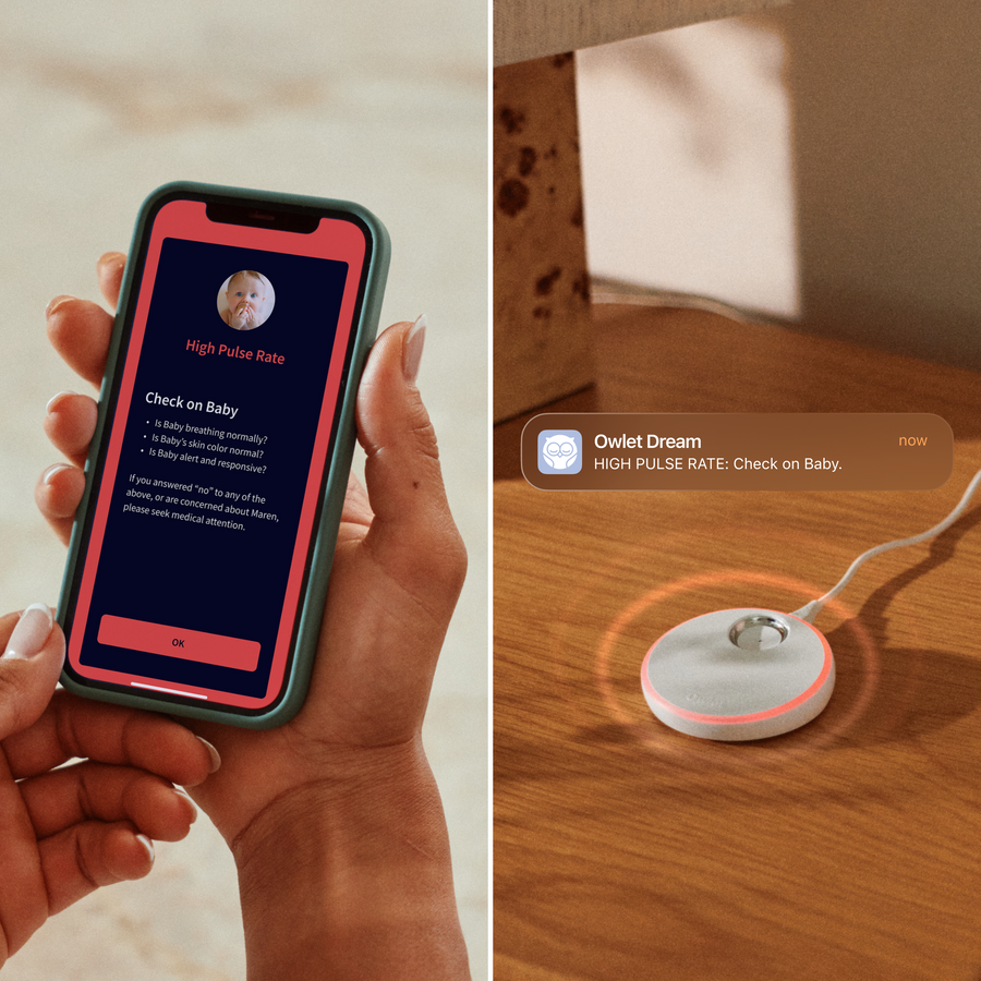 • Pulse Rate Notifications Dream Sock also monitors your baby’s pulse rate. If it rises too high or falls too low, you’ll be notified on the Base Station and in the Owlet Dream App in real time.